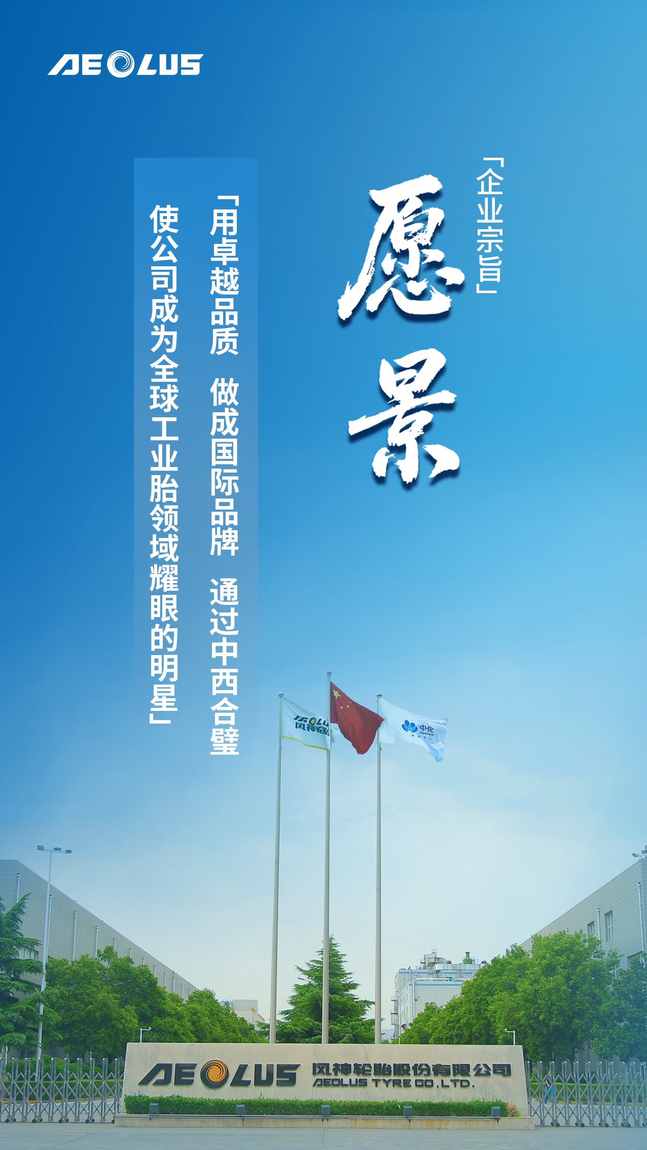 使命在身,身负重托——60年恰少年,风神胸怀抱负再次踏上新的征程,公司必须一切从实际出发,尊重历史、认识自我、把握规律、自立自强,在时代的召唤下,在市场的浪潮中,秉承前辈的创业精神,重专业、重经营、谋发展,做别人做不了的事,为客户创造更高价值轮胎,把该干的事干成,形成独有的未来之路,走出自己的与众不同。今天的风神人,将以更加坚定的文化自信,一往无前,走进一个时代,创造一段历史!