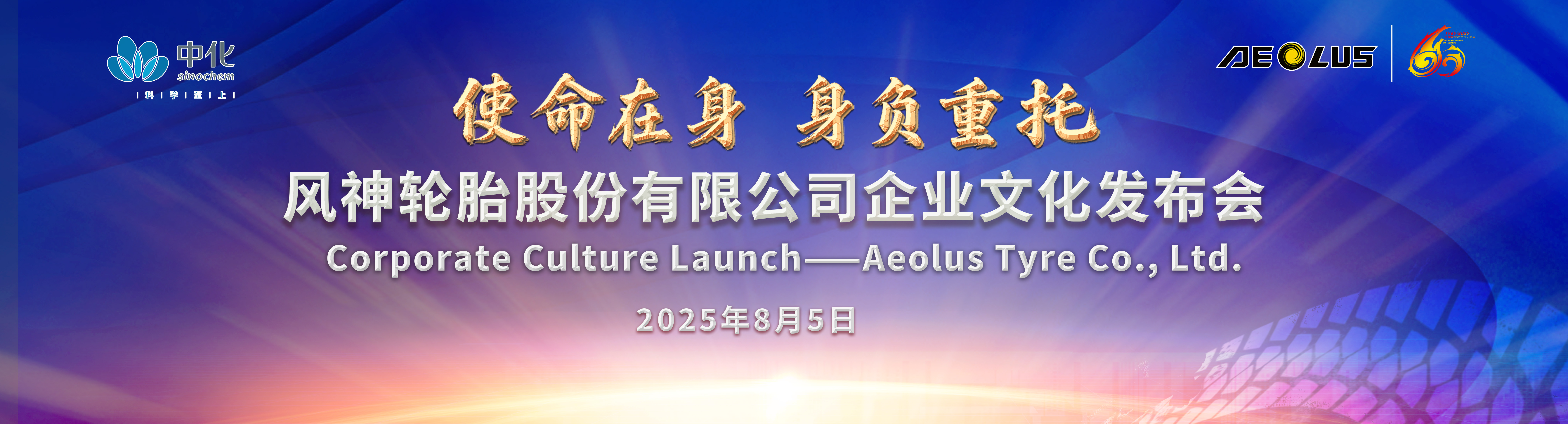 2025年8月5日,风神轮胎举行“使命在身 身负重托”企业文化发布会,献礼公司六十周年。会上,公司党委书记王建军发布了风神全新企业文化。